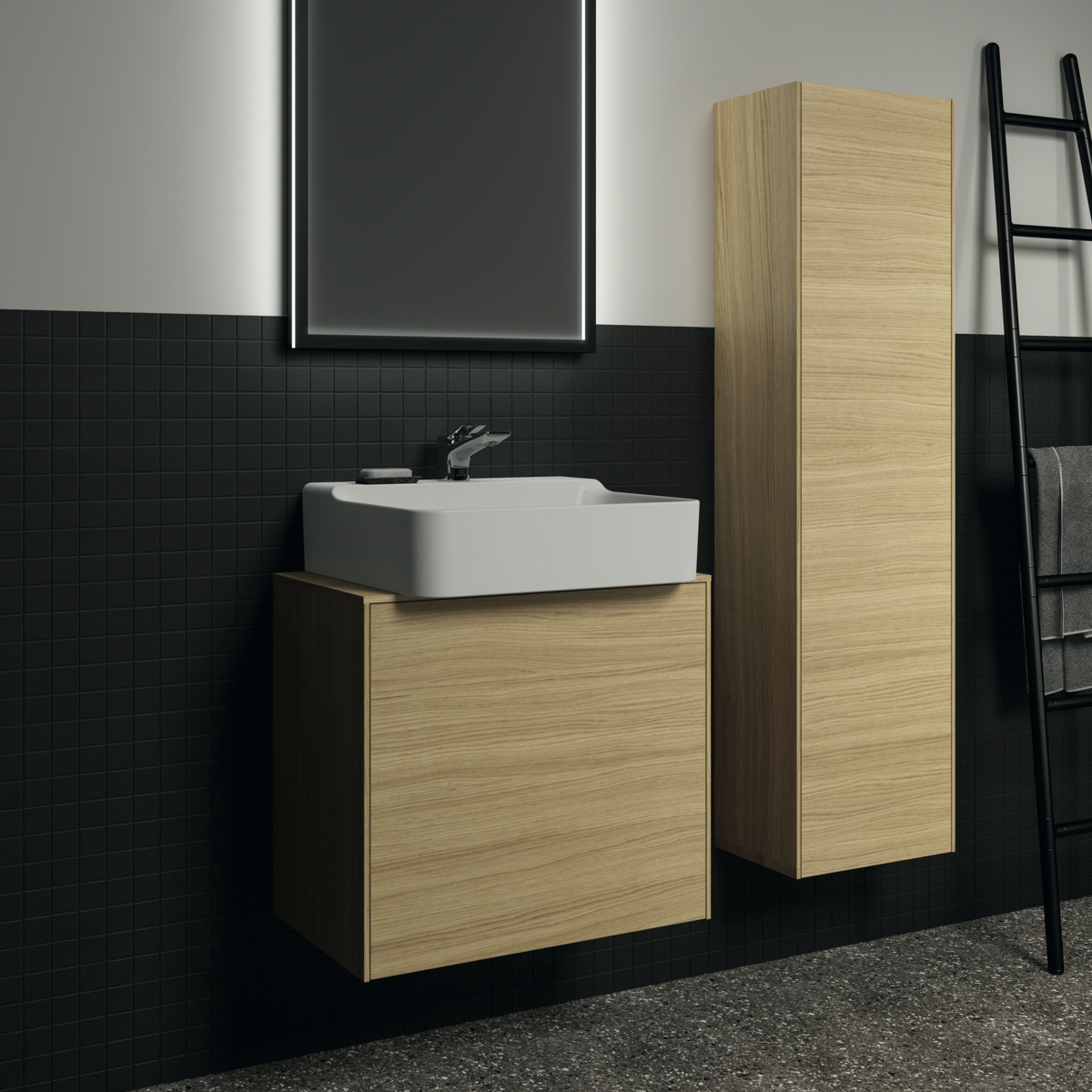 Шкаф-колонна Conca 37х25х140 см, светлый дуб, реверсивная установка двери, подвесной монтаж, система push-to-open, Ideal Standard