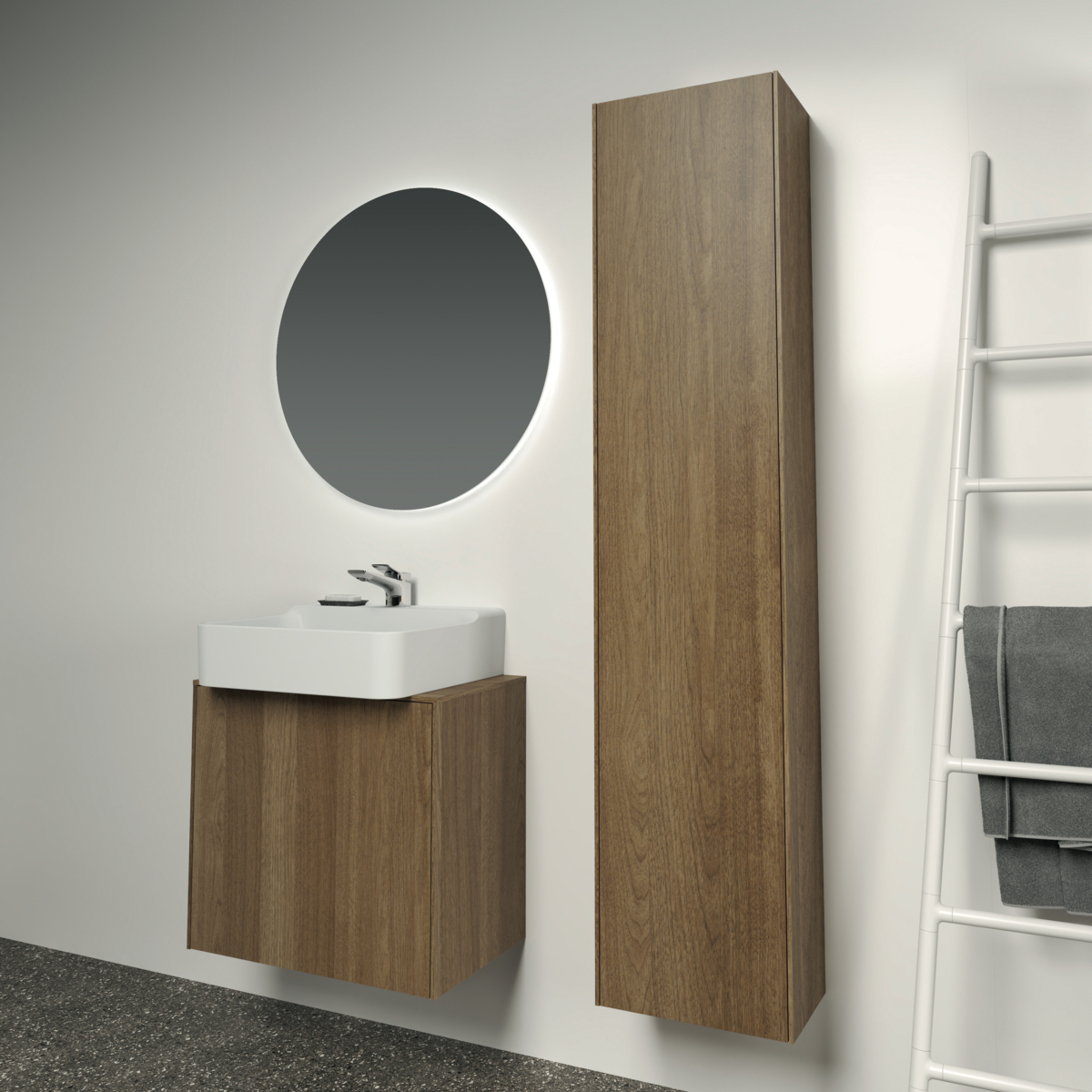 Шкаф-колонна Conca 37х25х170 см, темный орех, реверсивная установка двери, подвесной монтаж, система push-to-open, Ideal Standard
