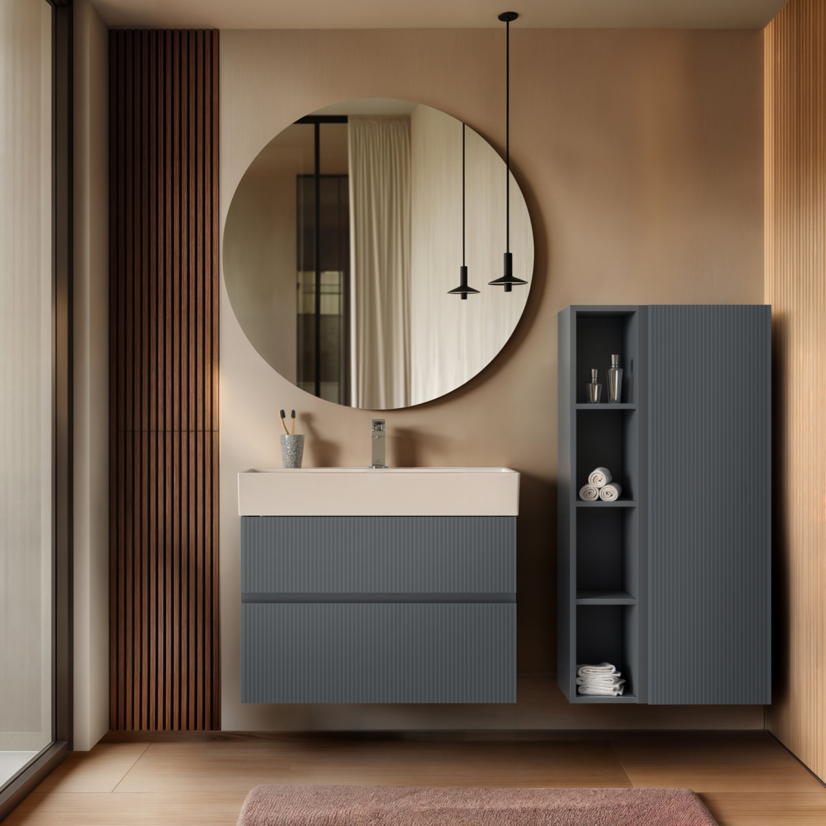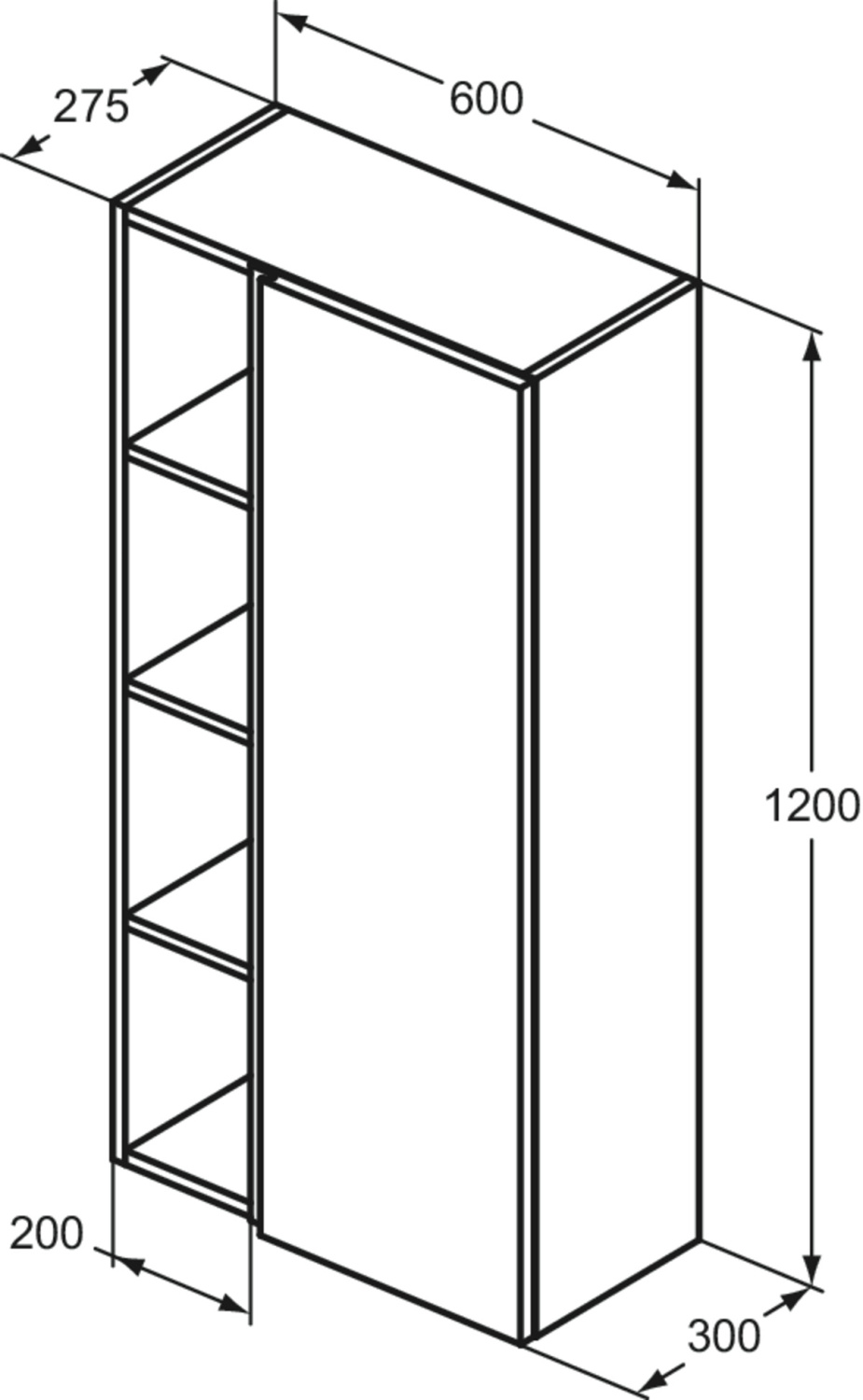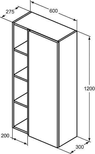 Шкаф-колонна Finesse 60х30х120 см, антрацит матовый (лак), реверсивная установка двери, подвесной монтаж, Ideal Standard