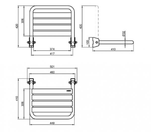 Вертикальное откидное сиденье для душа.Крепится к стене.