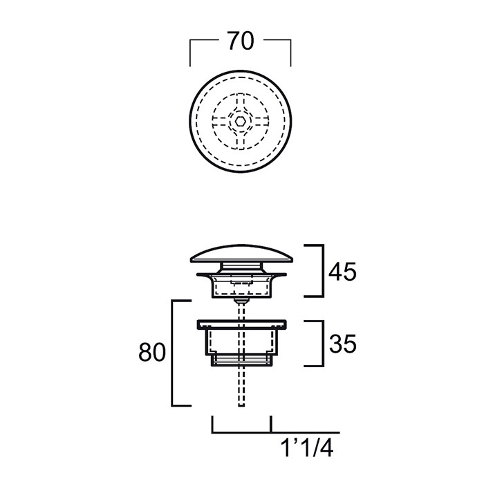 Сливной набор для раковины клик-клак, матовый, белый цвет, без перелива, Simas