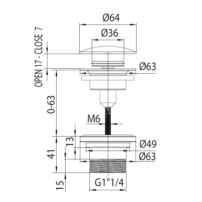 Сливной набор для раковины Teo матовый, чёрный цвет, без перелива, Bossini