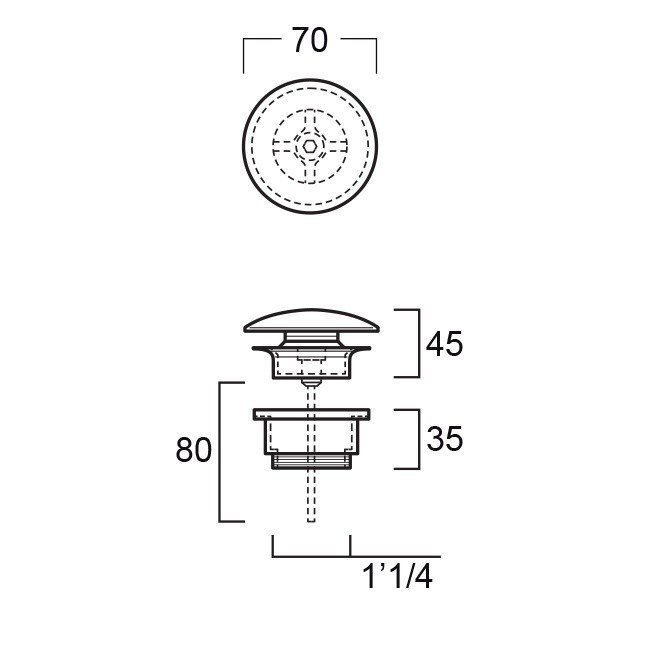 Сливной набор для раковины типа “быстрый затвор” или “свободный поток”, без перелива, Simas
