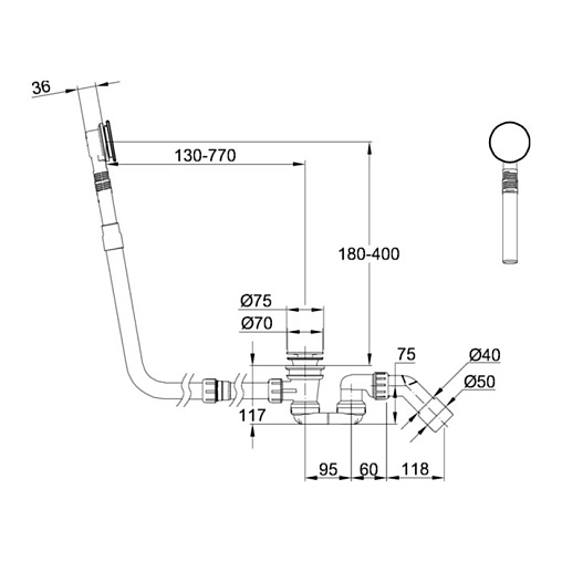 Слив-перелив для ванны 55 см, 550x195x170 мм, click-clack, белый, Bette