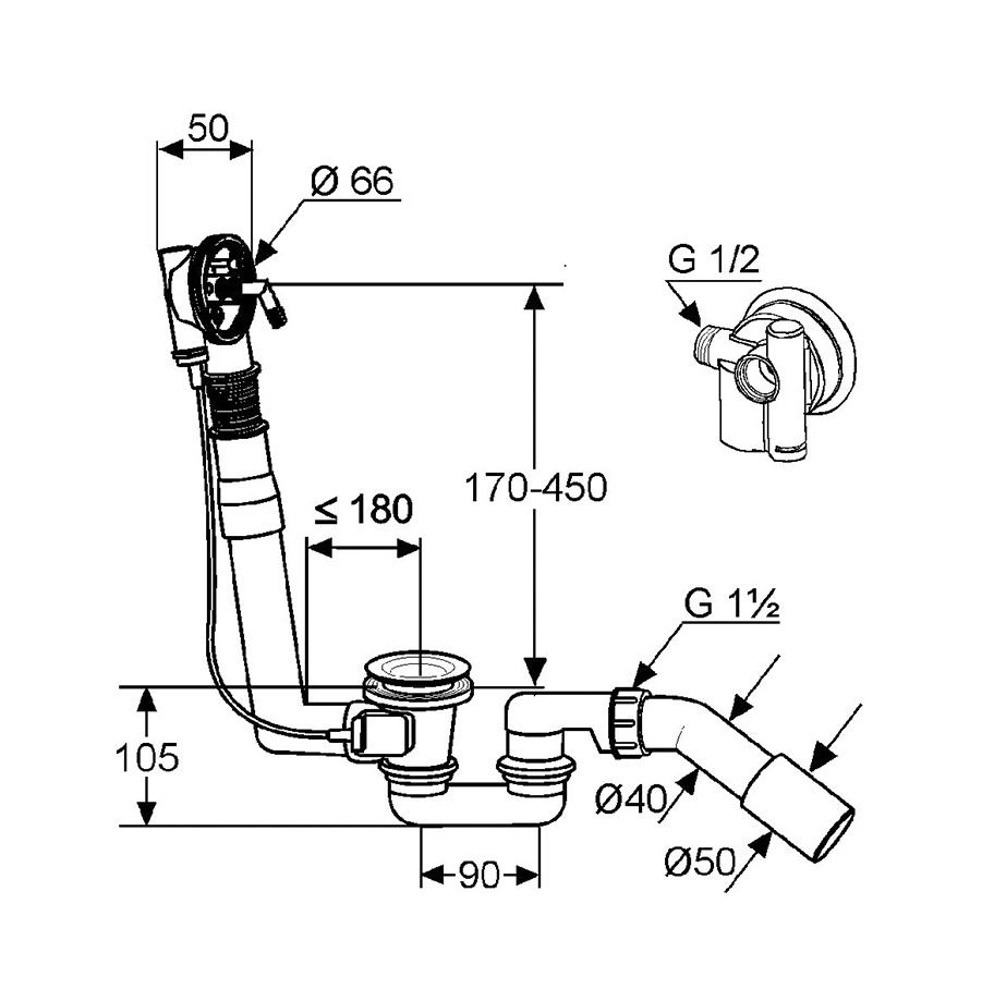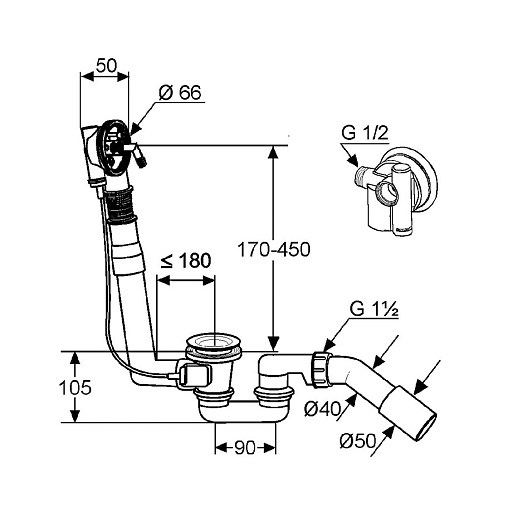 длина трубы до слива: 180 мм,