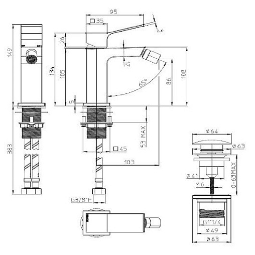 Aki, смеситель для биде, с донным клапаном, арт. Z00708.030, Bossini