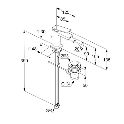 Смеситель для биде Decus матовый, чёрный цвет, с донным клапаном, Kludi