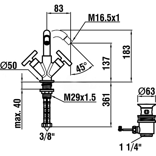 Смеситель для биде Twinprime высота до излива 13,7 см, с донным клапаном, Laufen