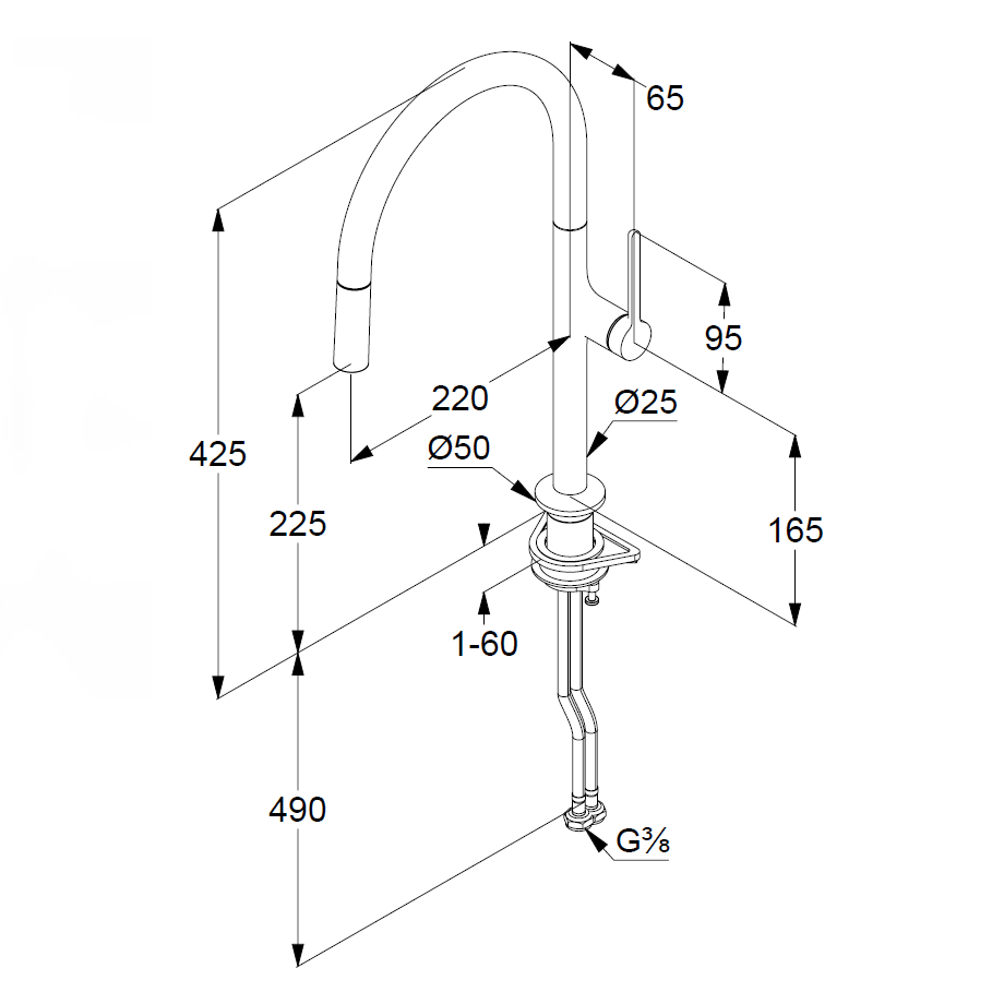 Reef, смеситель для кухни с выдвижной лейкой, арт. 508510575, Kludi