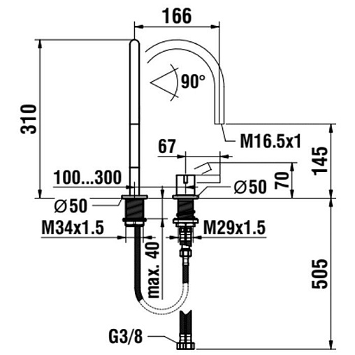 Смеситель для раковины (нержавеющая сталь матовая). Для раковины однорычажный на 2 отверстия, поворотный излив 166 мм, без донного клапана, PVD матовая нержавеющая сталь