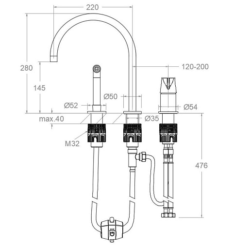 Элементы магния инструктированы в ручку смесителя, Элементы крепления к столешнице, а также в гибкой подводке.