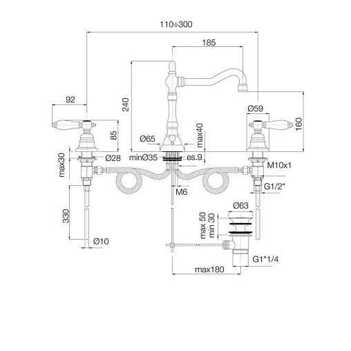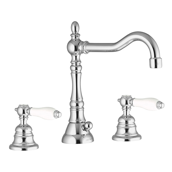 Смеситель для раковины на 3 отверстия Herend поворотный излив, с донным клапаном, Fima Carlo Frattini