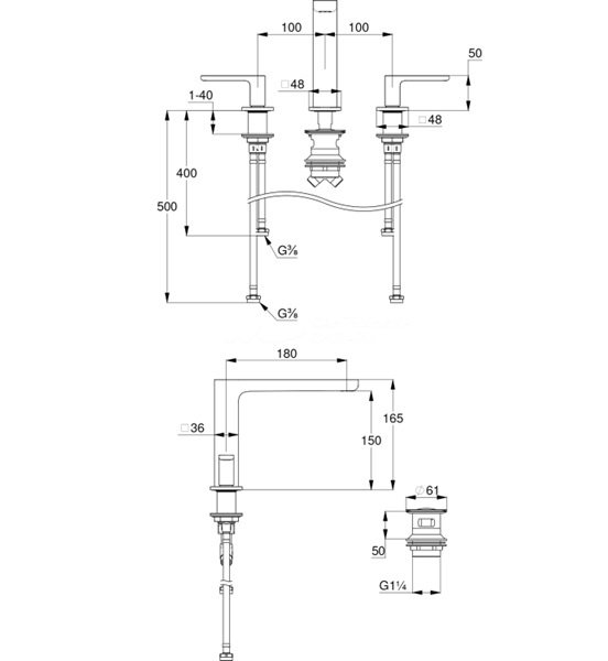 Сливной гарнитур: донный клапан 1 1/4 дюйма.
