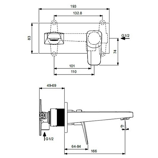 Ceraplan, внешняя часть смесителя на раковину, чёрный цвет, матовый, излив 18 см, арт. BD244XG, Ideal Standard