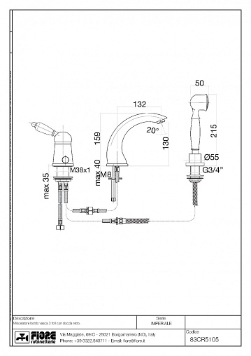 Imperial, смеситель на борт ванны, на 3 отв., золото, арт. 83OO5105, Fiore