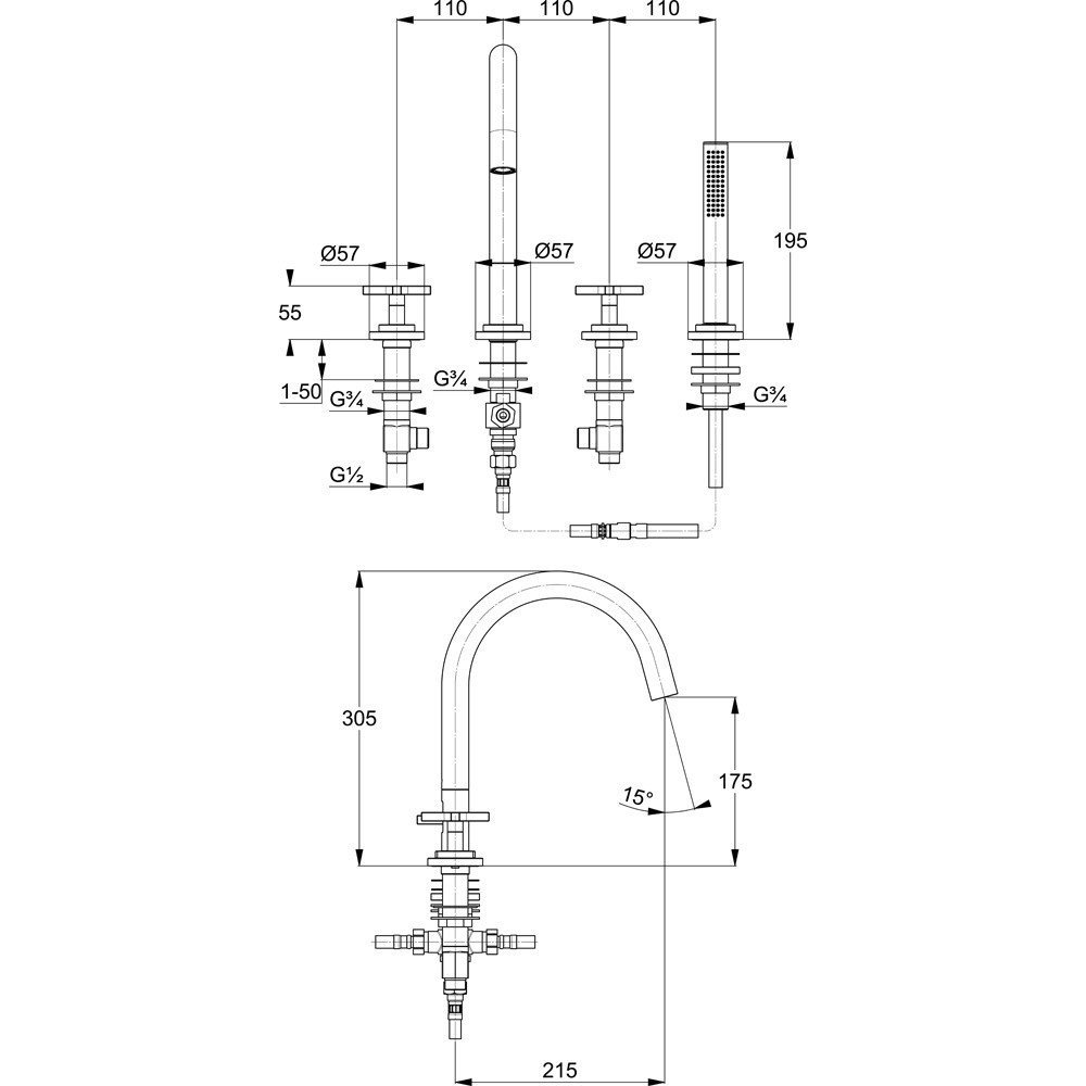 Смеситель на борт ванны Nova Fonte на 4 отв., Kludi