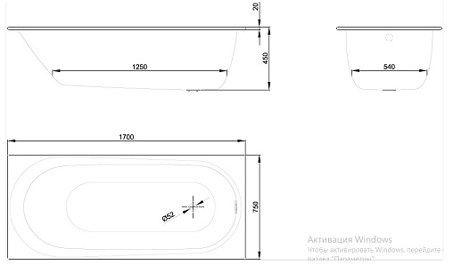 BetteComodo 170х75см, стальная ванна, толщина 3.5мм, без антискользящего, арт. 1250-000, Bette