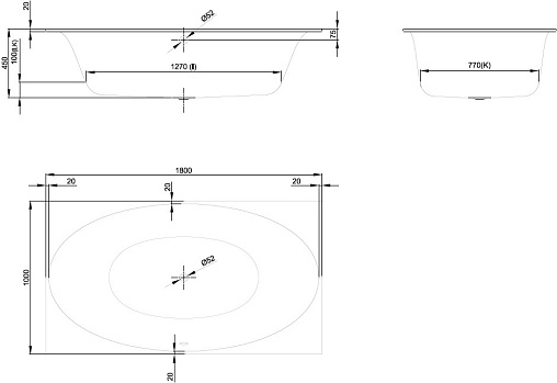 Стальная ванна BetteEve 180х100 см, BetteGlasur® Plus, толщина 3.5мм, без антискользящего, Bette