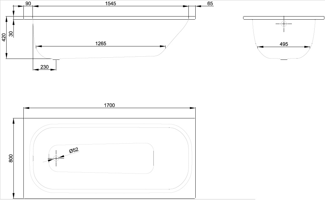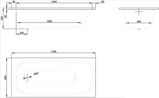 BetteForm 170х80см, стальная ванна, толщина 3.5мм, без антискользящего, арт. 2948-000, Bette