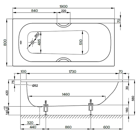Стальная ванна BetteForm 190х80 см, толщина 3.5мм, без антискользящего, Bette