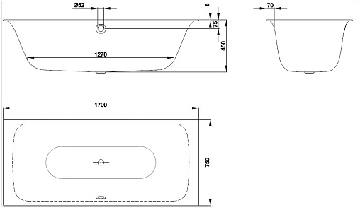 Стальная ванна BetteLux 170х75 см, толщина 3.5мм, антискользящее покр., Bette