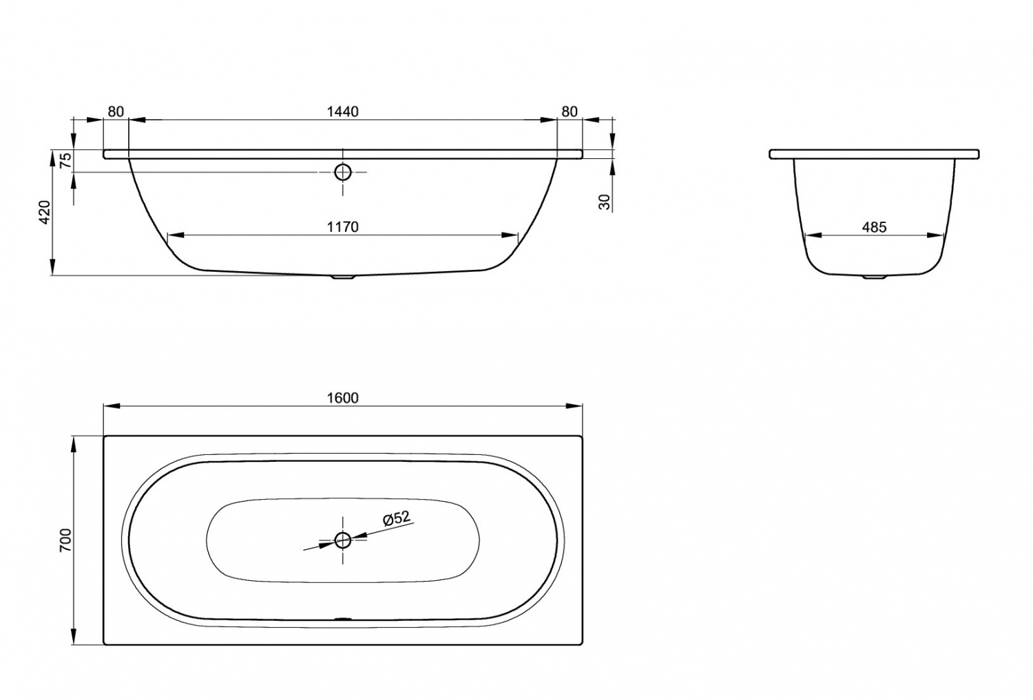 Стальная ванна BetteStarlet 160х70 см, с самоочищающимся покрытием glaze plus, толщина 3.5мм, без антискользящего, Bette