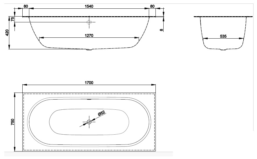 Стандартные, имеющиеся в продаже, анкера для ванн невозможно комбинировать с данной моделью из-за загнутого края.