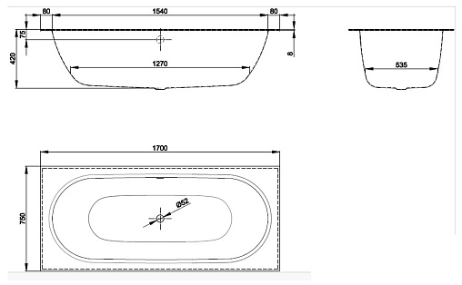 Стальная ванна BetteStarlet Spirit 170х75 см, толщина 3.5мм, антискользящее покр., Bette