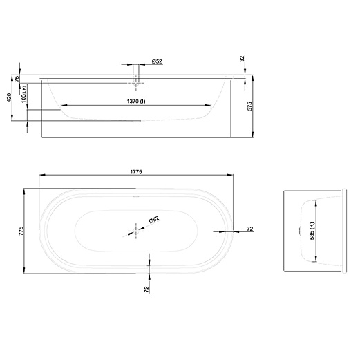 BetteSuno 177,5х75см, стальная ванна, толщина 3.5мм, овальная, без антискользящего, арт. 2740-000 CFXXSR, Bette