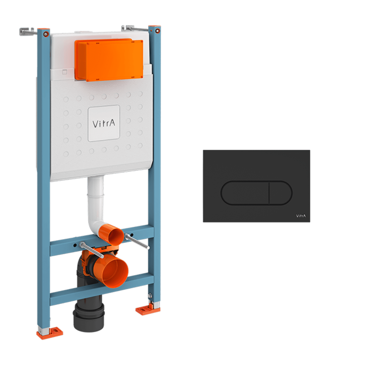 Система инсталляции для унитаза V-Fix Core 48х13х112 см, root round, матовая, черная, с кнопкой, Vitra