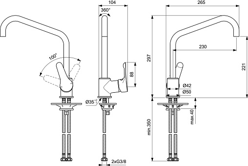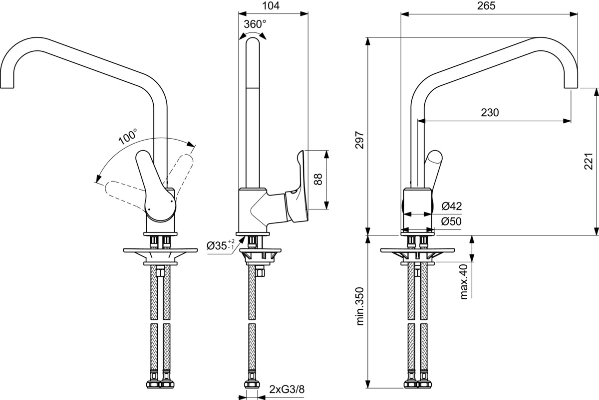 Смеситель для кухни Alpha поворотный излив, Ideal Standard