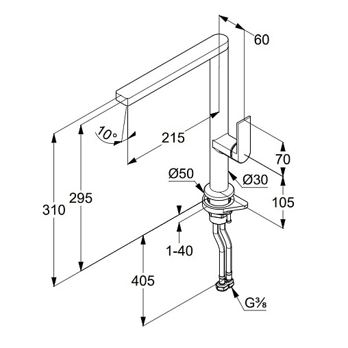 Диаметр подводки G 3/8