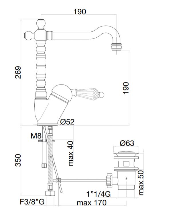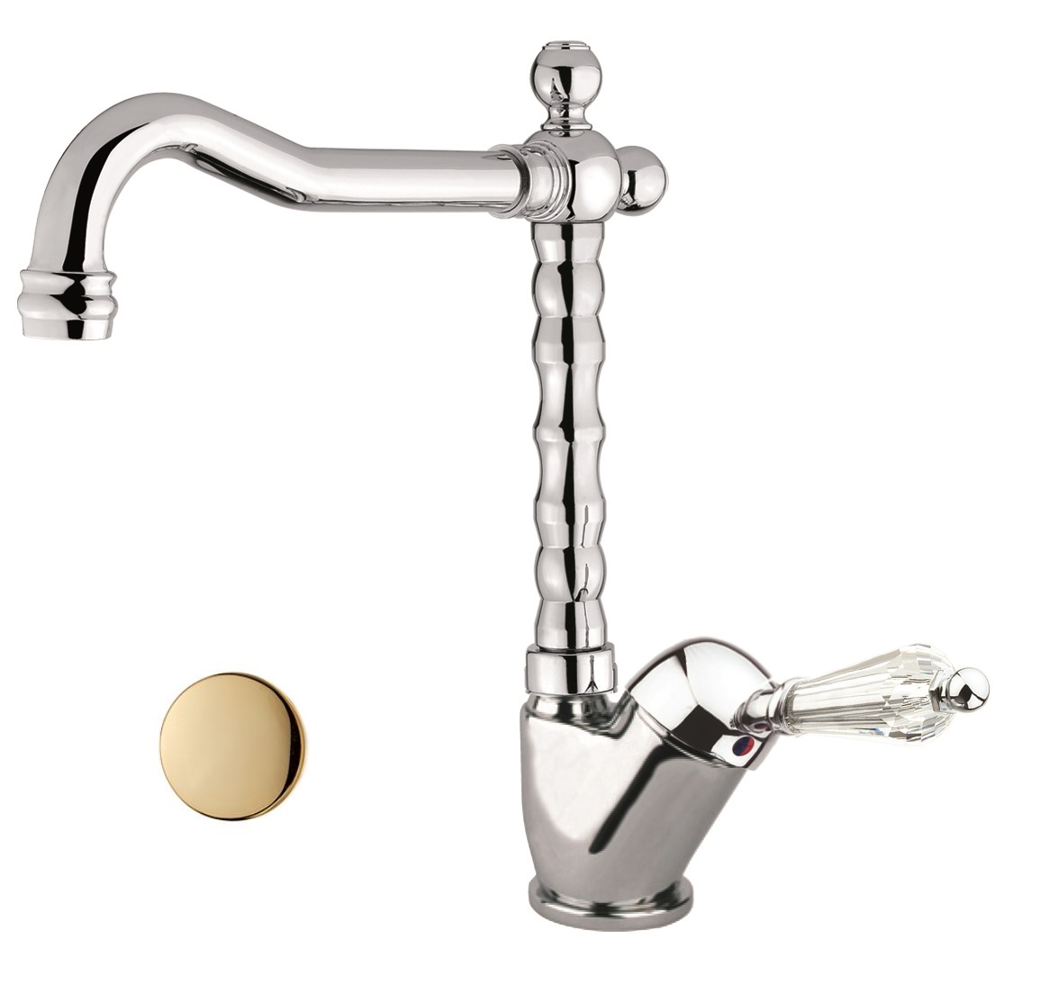 Imperiale Sky, смеситель для умывальника, поворотный излив, золото, с донным клапаном, арт. 82OO2245, Fiore