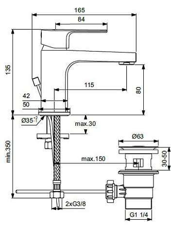 Смеситель для умывальника Cerafine D неповоротный излив, с донным клапаном, Ideal Standard