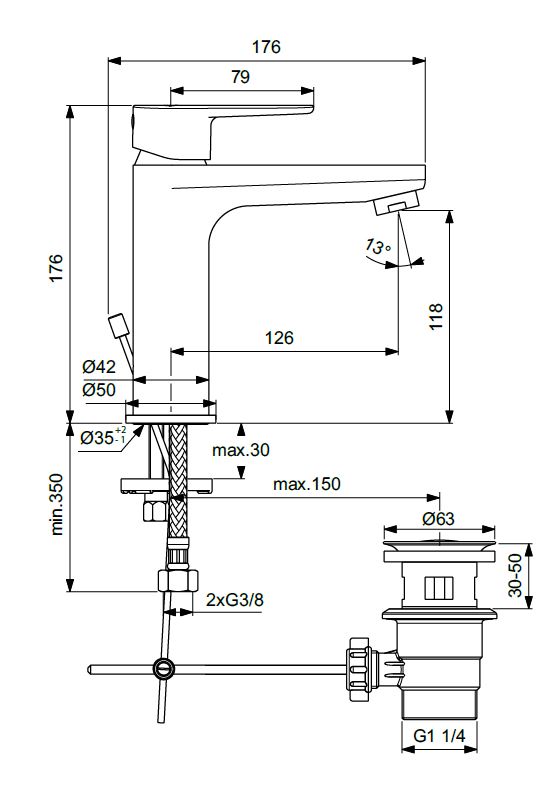 Смеситель для умывальника Cerafine О неповоротный излив, с донным клапаном, Ideal Standard
