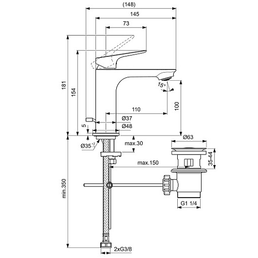 Смеситель для умывальника Ceralife O неповоротный излив, с донным клапаном, Ideal Standard