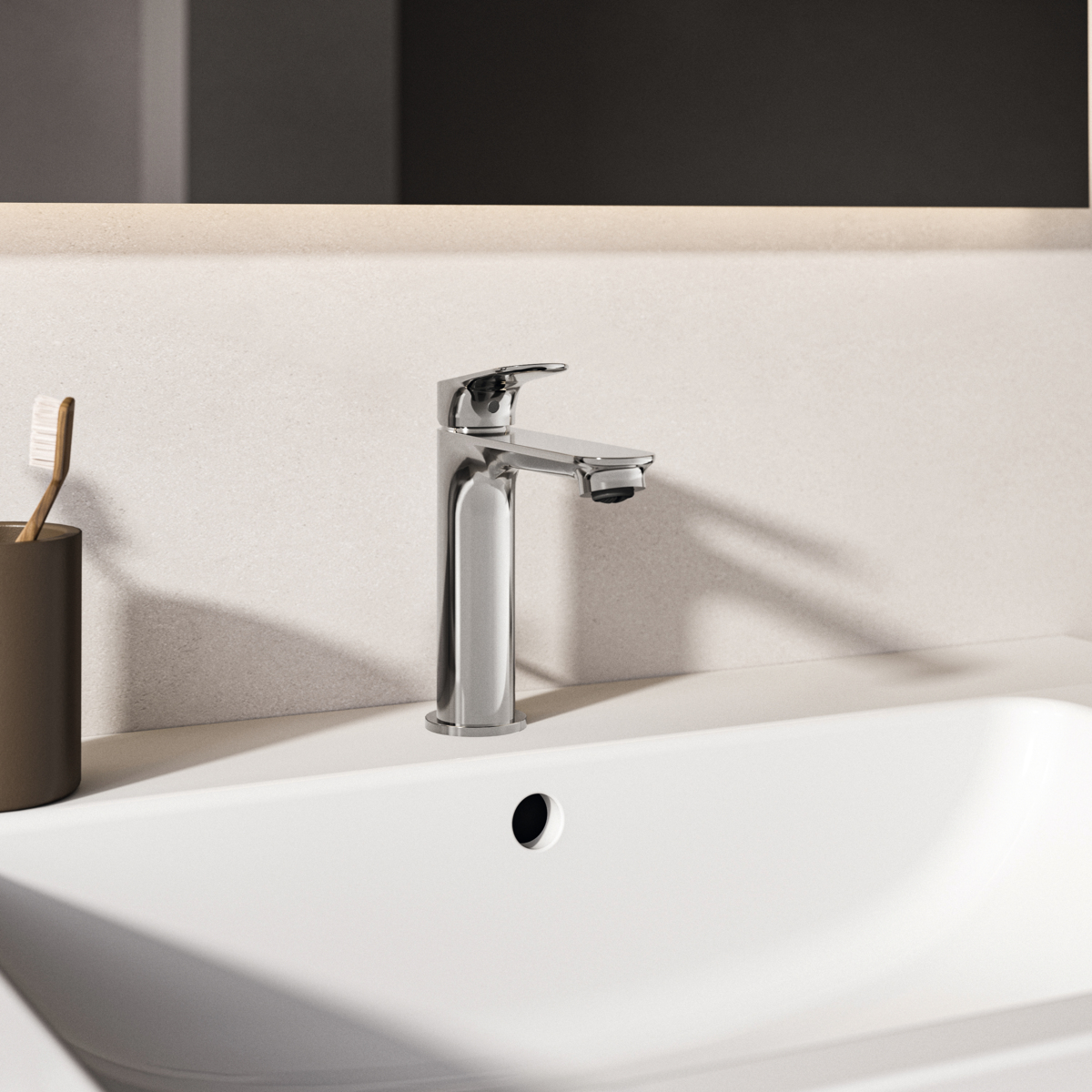 CeraLife_O Смеситель для раковины H120 с донным клапаном, керамический картридж FirmaFlow 28 мм с функцией HWTC (ограничение максимальной температуры горячей воды), металлическая рукоятка с индикаторами горячей / холодной воды, аэратор с ограничением потока 3,8 л/мин Coin Slot, система монтажа EASY-FIX (облегченный монтаж), гибкая подводка G3/8", металлический донный клапан
