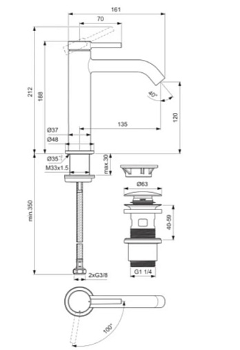 смеситель для раковины H120 с независимым донным клапаном Click