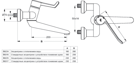 CERAPLUS Настенный смеситель для умывальника с цикловым затвором, монтаж на стандартных эксцентриках с возможностью облегченного демонтажа, с шумопонижателем, рукоятка – 18 см, с индикатором горячей / холодной воды, антивандальный ламинарный аэратор M24x1, картридж 4,7 см с цикловым затвором, с функцией перекрытия горячей воды, излив 20 см, три варианта крепежа излива: фикс. среднее положение, ограниченное движение ±45°, неограниченное движение, герметичные накладки, скрытый монтаж