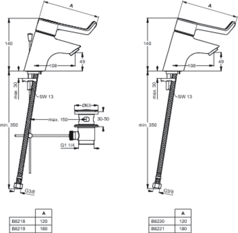 Смеситель для умывальника Ceraplus однорыжачный, неповоротный излив, с донным клапаном, Ideal Standard