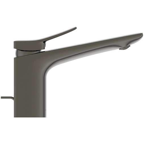 CONCA Grande Однорукоятковый смеситель для раковины с металлическим донным клапаном, керамический картридж 28 мм, с функцией HWTC (ограничение максимальной температуры горячей воды), без функции CLICK, логотип Ideal Standard на корпусе, металлическая рукоятка без индикаторов горячей/холодной воды, аэратор Coin slot M24x1 с ограничением потока 5 л/мин, система монтажа EASY-FIX (облегченный монтаж), гибкая подводка G3/8" PEX. Цветное покрытие - технология PVD