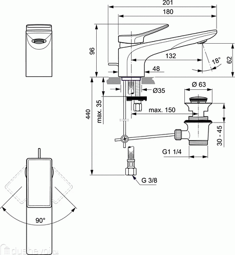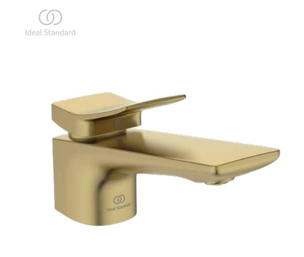 Смеситель для умывальника Conca неповоротный излив, золото шлифованное, с донным клапаном, Ideal Standard