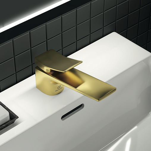 Смеситель для умывальника Conca высота до излива 6,2см, неповоротный излив, золото шлифованное, без донного клапана, Ideal Standard