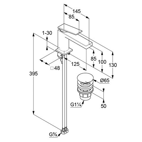 высота излива 85 мм