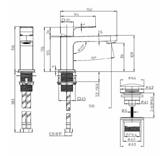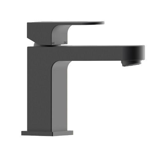 Gillo, смеситель для умывальника, неповоротный излив, чёрный цвет, с донным клапаном, матовый, арт. Z00704.073, Bossini