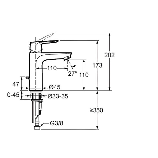 July+, смеситель для умывальника, неповоротный излив, с донным клапаном, арт. E35664-4-CP, Jacob Delafon