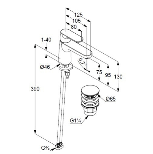 Смеситель для умывальника Louva push-open, высота до излива 7,5см, неповоротный излив, с донным клапаном, Kludi