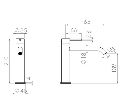 -Длина излива: 165 мм