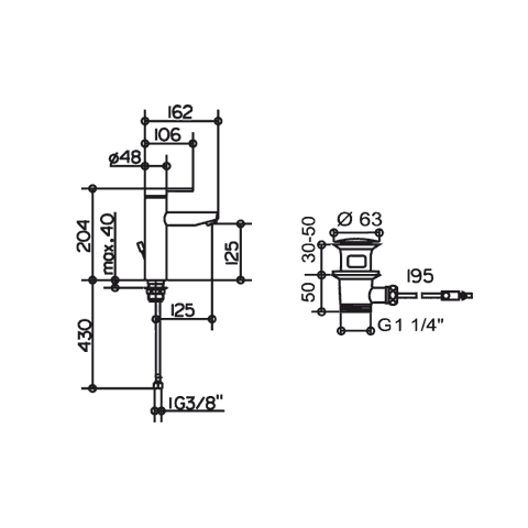 Стильный смеситель для раковины Keuco Plan Blue 53902 010002 c гарнитурой для слива и донным клапаном 1 и 1/4 дюйма. Оснащен аэратором SLIM SSR M 24x1 и гибкой подводкой 570 мм, G 3/8 дюйма.
