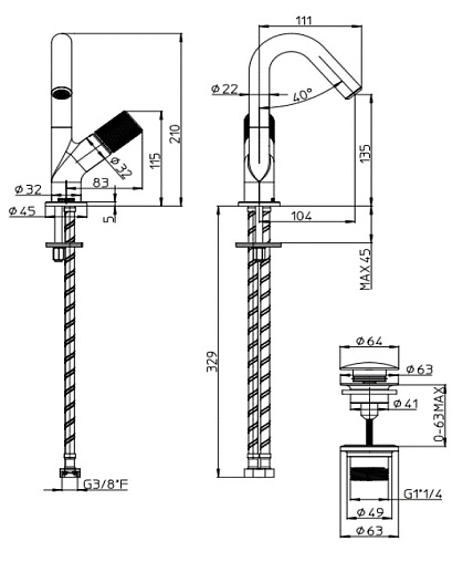 -Регулируемый выпускной патрубок с аэратором M16,5x1.